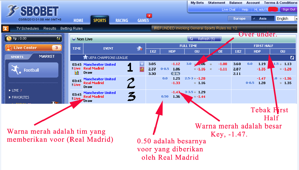 Namun dalam hal ini, anda memerlukan wawasan tambahan ketika memulai permainan yang ingin dimainkan tentang taruhan yang tersedia. Cara hitung arti over under (ou) over under judi bola mungkin masih awam untuk kamu yang biasanya hanya taruhan 2 babak / full time baik offline dengan teman maupun online. Karena bermain taruhan over / under kita tidak mempedulikan tim. Kali ini kami bakal memberikan anda ilmu pengetahuan seputar istilah yang biasanya belum anda ketahui dalam permainan judi bola sbobet. Untuk betting, anda dalam keseluruhannya bisa melihat istilah sebagai berikut.